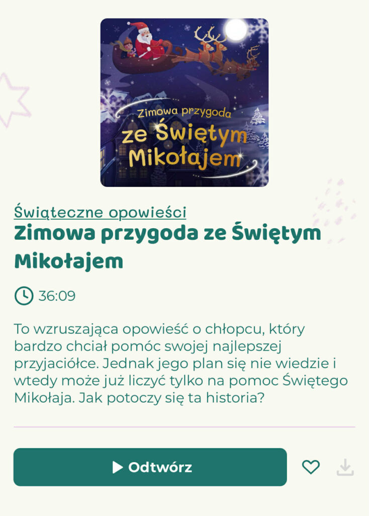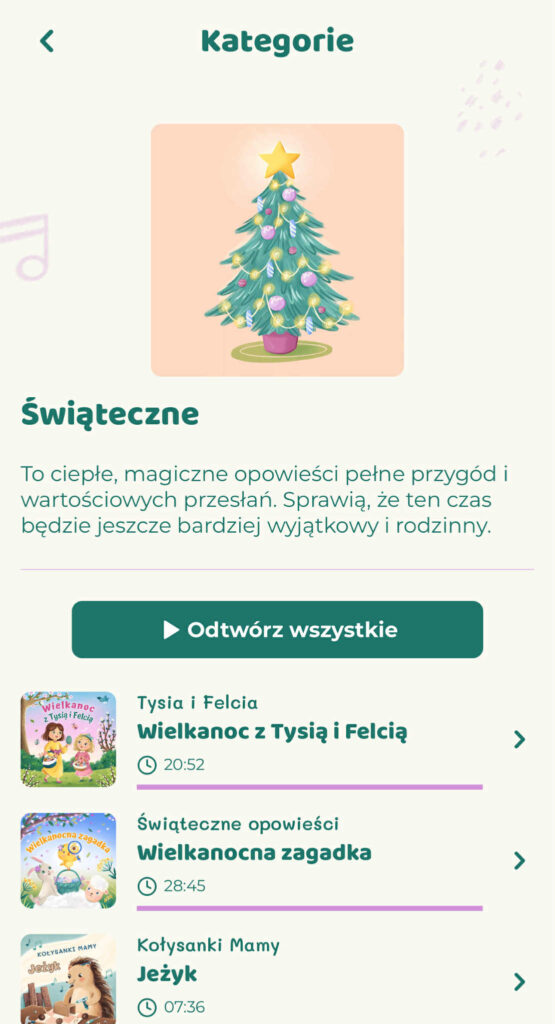 – bajki świąteczne – wprowadzające w klimat Bożego Narodzenia, Wielkanocy czy zimowych wieczorów.