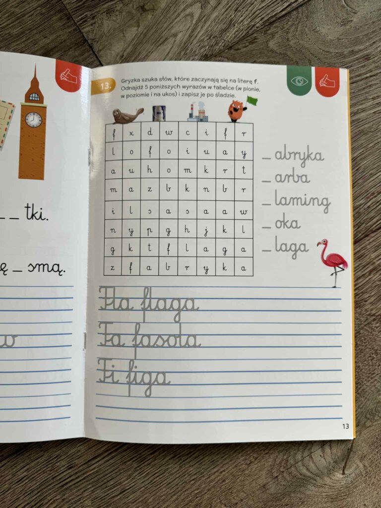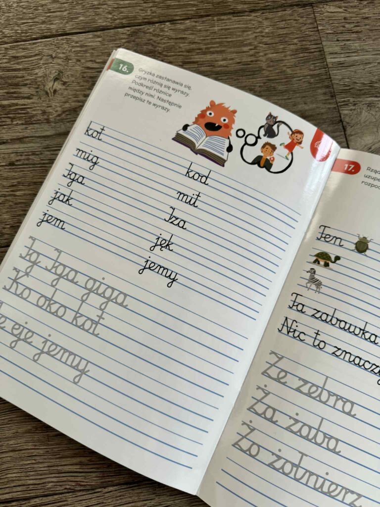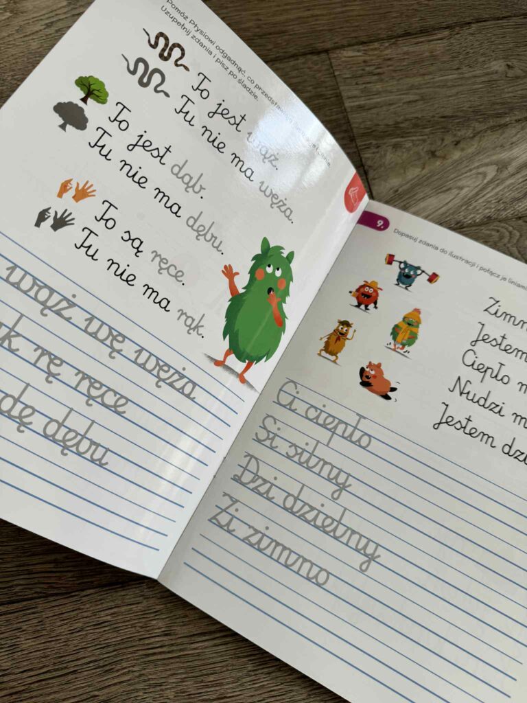 Bo nauka nie może być nudna. Zamiast „zadania do odrobienia” mamy tu zabawę, która uczy mimochodem. Dziecko samo sięga po zeszyt, bo go to ciekawi, a Ty masz pewność, że w tym czasie naprawdę rozwija swoje umiejętności.