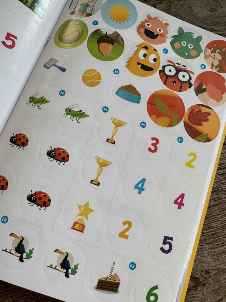 To zeszyty, które nie wyglądają jak ćwiczenia ze szkoły. Bardziej jak kolorowe przygody: z naklejkami, pisakami suchościeralnymi i zadaniami, do których Basia chciała wracać.