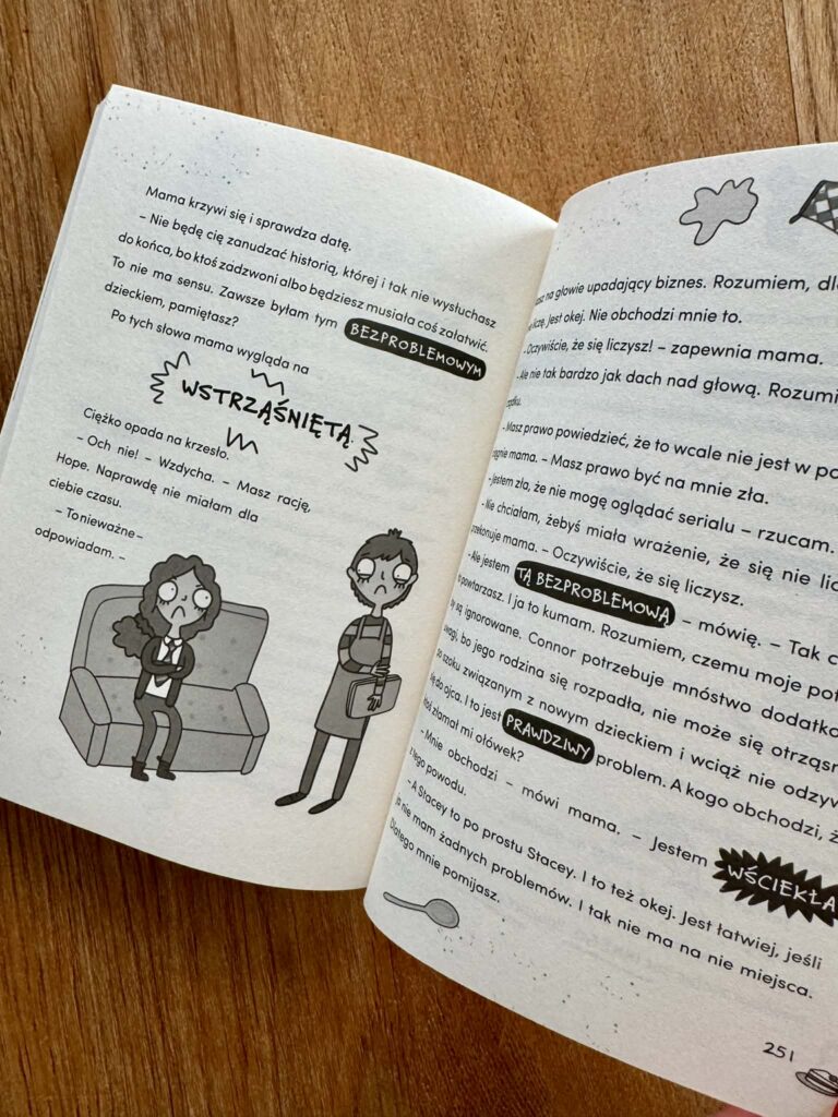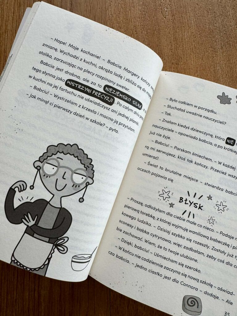 Jestem przekonana, że ta książka świetnie wpisze się w potrzeby dzieci w wieku 9–10 lat, które chcą się przejrzeć w bohaterach. Nie w superbohaterach. W zwykłych dzieciach z lekko potarganym życiem. Widzę to bardzo wyraźnie po swojej córce, którą interesują właśnie takie historie. O rówieśnikach, o codzienności, o sprawach, które wydają się małe, a są ogromne. Tam siebie odnajduje.