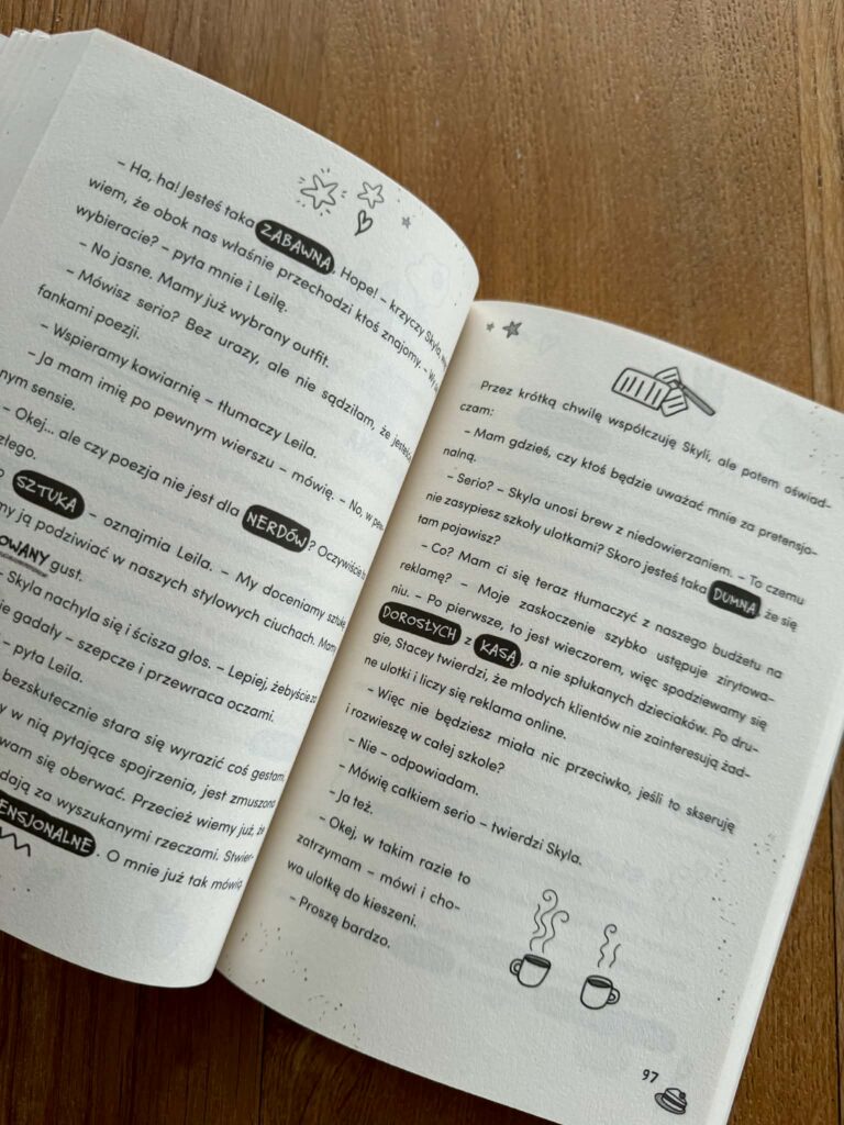 „Cafe Chaos. Rodzinka nie do ogarnięcia” przypomniała mi, jakich książek najczęściej potrzebują dzieci – szczególnie dziewczynki – gdzieś od dziewiątego roku życia. Szukają historii bliskich ich codzienności. Takich, w których szkoła, przyjaźnie, rodzinne zamieszanie i małe-wielkie dramaty mieszają się w jedną, dobrze znaną im rzeczywistość. I dokładnie to tutaj dostają.