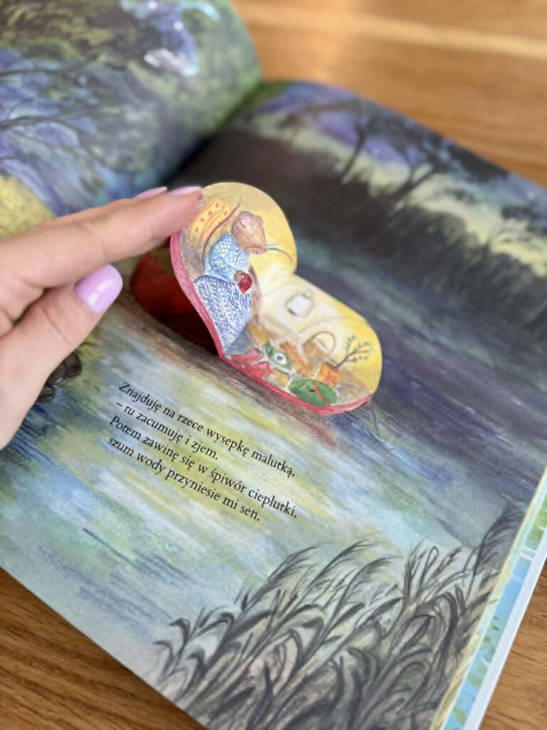 Zaglądamy do środka domków Myszki i jej leśnych przyjaciół. Otwieramy ruchome klapki, uchylamy okienka, podglądamy życie bohaterów. Każda strona zaprasza do zatrzymania się na chwilę i odkrywania szczegółów. To doświadczenie bardzo angażujące i dla dzieci, i dla dorosłych.