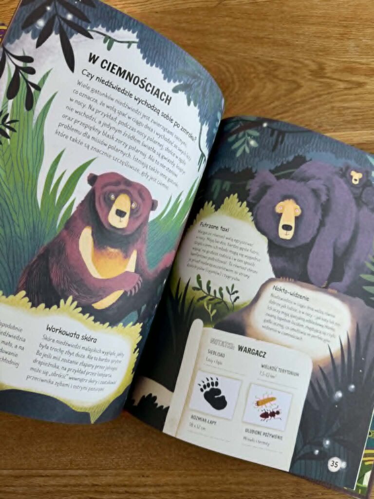 Druga seria to książki popularnonaukowe o zwierzętach: niedźwiedziach, pingwinach i wilkach. Tu nie ma już okienek i klapek, jest za to coś innego: konkretna, atrakcyjnie podana wiedza.
