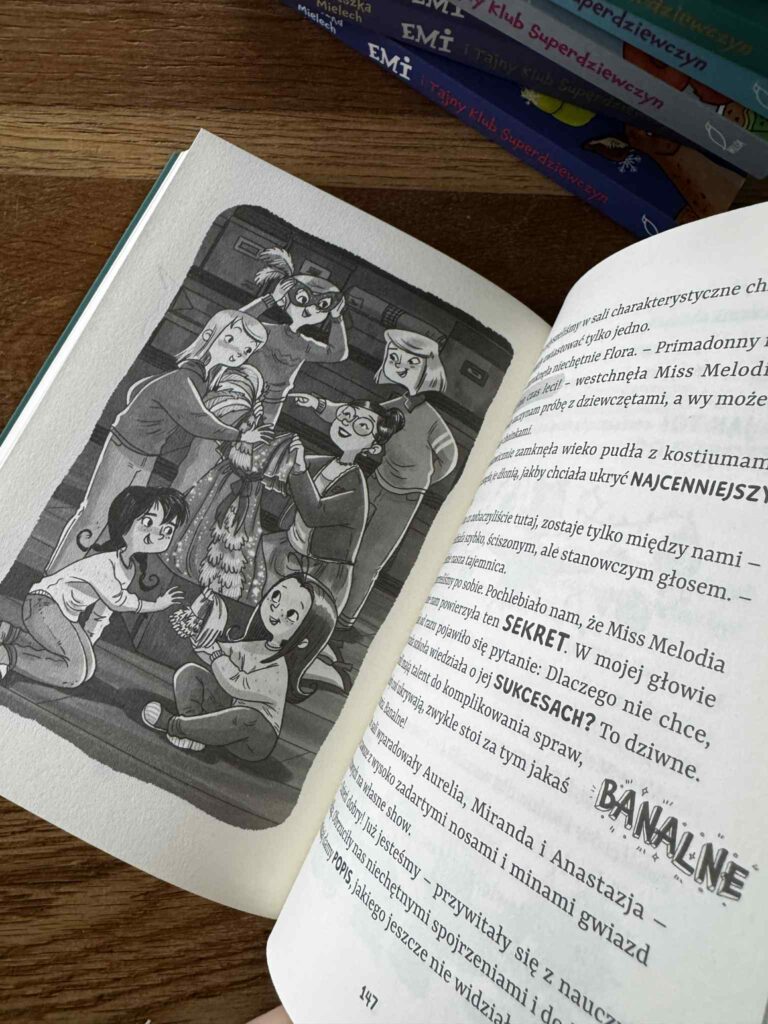 Jak zawsze u „Emi i Tajnego Klubu Superdziewczyn”, mamy tu miks szkolnego życia, przyjaźni i codziennych spraw, które dzieci tak dobrze znają. Są tu i małe konflikty, i zazdrość, ale też mnóstwo ciepła. Rodzice są w tle, ale zawsze wspierający, nie dominujący. Najważniejsze są relacje między dziećmi: szczere, czasem trudne, ale zawsze prawdziwe.