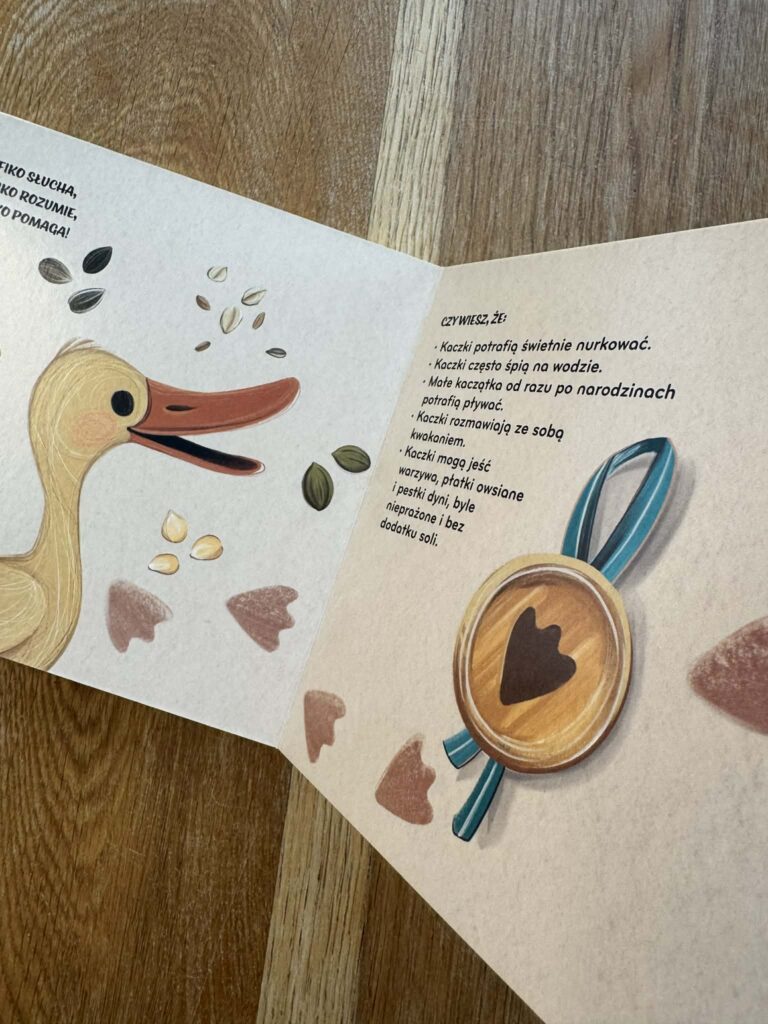 Bardzo podoba mi się też zakończenie. Fiko bowiem robi plakat o tym, czym można karmić kaczki. Do tego mamy jeszcze krótkie ciekawostki, które dzieci naprawdę lubią.
