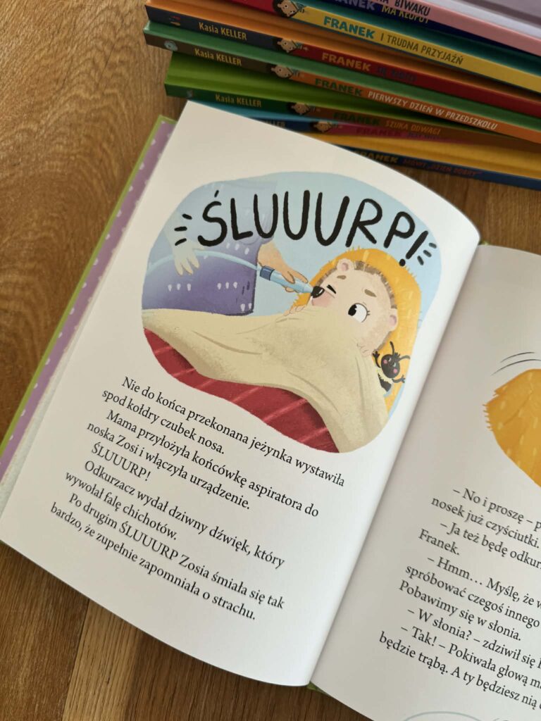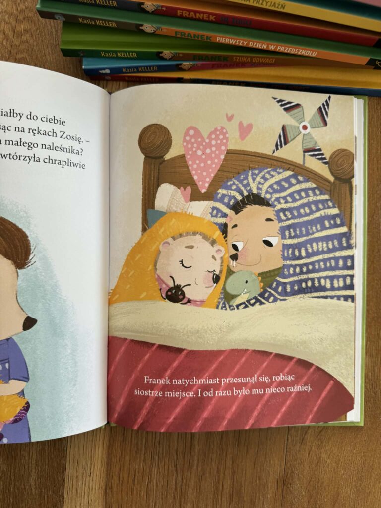 Te książki mają jeszcze jedną ogromną zaletę – ich bohaterowie to zwierzęta. I to naprawdę robi różnicę. Dziecko nie czuje się oceniane, nie ma wrażenia, że ktoś pokazuje mu palcem: „to ty”. Zamiast tego dostaje bezpieczną przestrzeń: „hej, Franek też tak ma”. .