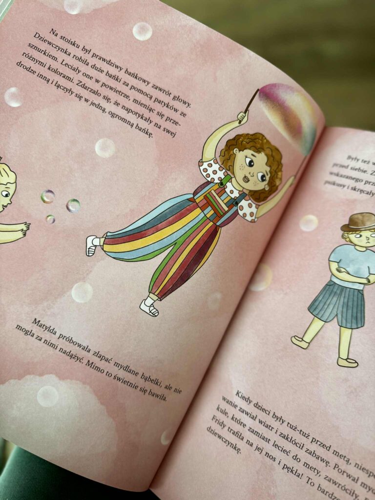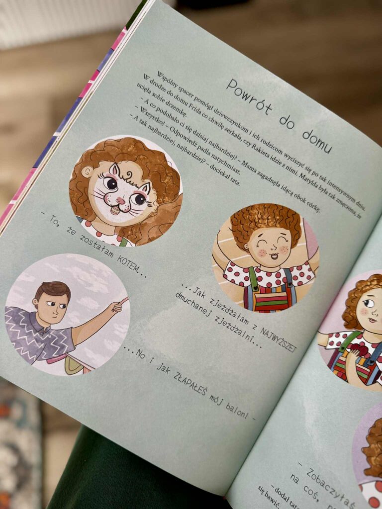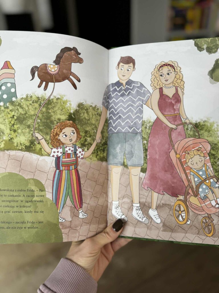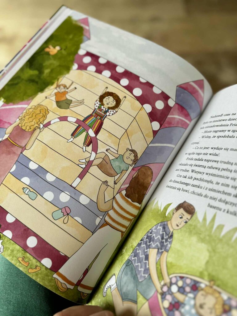 Ta historia może wydawać się bardzo zwyczajna, a jednak szybko wciąga w emocjonalny wir, który doskonale zna większość rodziców. I dzieci oczywiście też. I od razu Ci powiem, że objęłam książkę „Frida na festynie” patronatem, bo znalazłam w niej sytuacje, które sama znam z doświadczenia. A do tego dostałam jeszcze ciepło, uważność, i dziecięcą perspektywę.