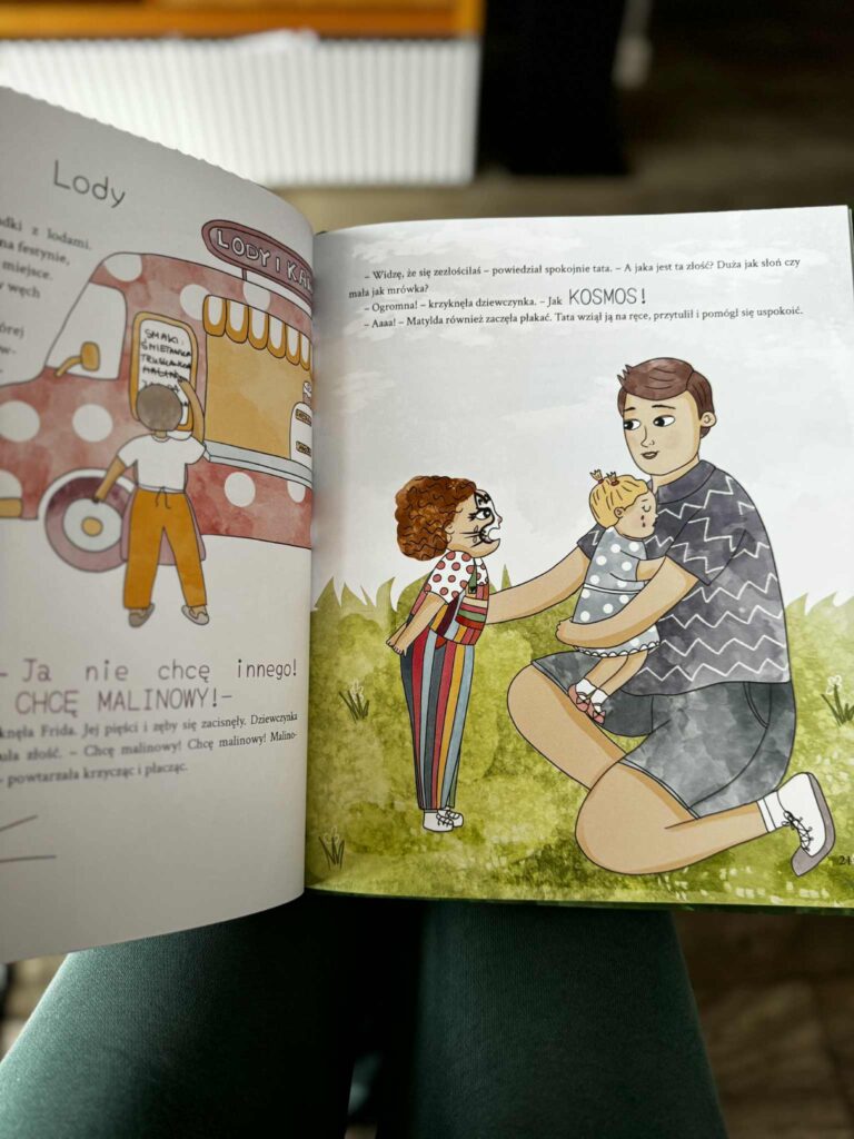 I właśnie tu jest dla mnie największa wartość tej książki. Dla dzieci to będzie historia bliska, zrozumiała, pełna sytuacji, które same dobrze znają. Ale dla dorosłych to pewnym sensie poradnik w praktyce. Podpowiedź, jak wspierać dziecko, gdy ono nie radzi sobie z emocjami, gdy pojawiają się łzy. Jak być obok, nie próbując na siłę wszystkiego od razu naprawiać.