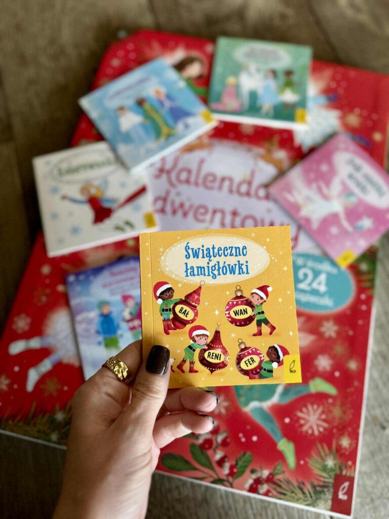 Wśród wszystkich książkowych kalendarzy adwentowych, jakie co roku pojawiają się na rynku, ten od wydawnictwa Wilga naprawdę zasługuje na szczególną uwagę. Bo to nie jest zwykły kalendarz. To jest gigakalendarz! Taki, który od razu robi efekt wow, zanim jeszcze cokolwiek otworzysz. Jest ogromny, piękny, błyszczący i od razu wprowadza w świąteczny nastrój. Jakby ktoś zapakował całą magię grudnia do jednej wielkiej teczki. I teraz najlepsze: zamiast czekoladek (które, umówmy się, znikają zanim zdążysz powiedzieć „nie wszystkie naraz!”), w środku kryje się coś o wiele lepszego – 24 małe książeczki! Każdego dnia razem z dzieckiem otwieracie kolejne okienko, a tam czeka nowa opowieść, nowe ilustracje, nowe historie do odkrycia.