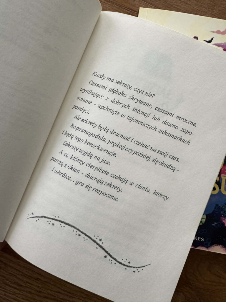 Bo „Księgarnia na tyłach Kresu” to nie tylko pędząca przygoda i fantastyczna opowieść pełna błyskotliwego chaosu. To również historia o sekretach. O tych, które chowamy głęboko w sercu. O tych zamkniętych w słoikach. I o tych, które ciągną się za nami od lat i o tych, które potrafią wpływać na wszystko, co dzieje się teraz. To właśnie sekret staje się jednym z najważniejszych motywów tej części — sekret jako ciężar, jako ochrona, jako wybór.