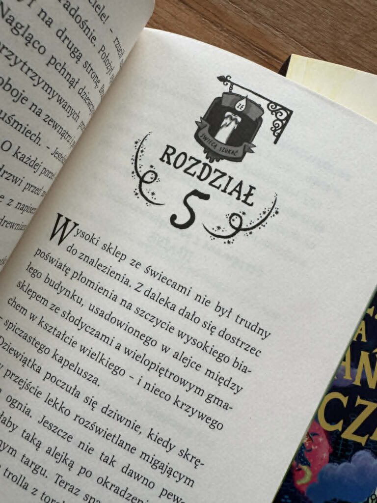 Są oczywiście wybuchy, zaklęcia, magiczne przemiany i postaci tak osobliwe, że aż trudno uwierzyć, jak naturalnie wpisują się w ten świat. Są skaczące domy, tajemnicze stwory kradnące tosty, mówiące świece (a tak naprawdę chochliki) i latające litery układające się w słowa. Jest sekretna księgarnia. Jest magia, która potrafi zachwycać i przerażać jednocześnie. I oczywiście herbata truskawkowa, która jest dobra na każde zmartwienie.