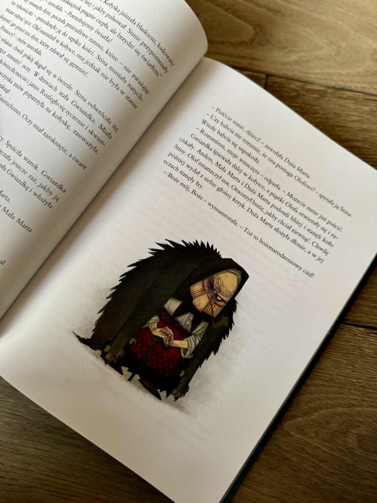 Uwielbiam, kiedy książka współgra z rytmem zimy. Ta jest podzielona na 24 rozdziały, jest więc doskonała do wspólnego czytania od 1 grudnia, po jednym każdego wieczoru, aż do świąt. To naprawdę tworzy atmosferę oczekiwania, powolnego zanurzania się w świat magii, śniegu, przygód i wielkich emocji.