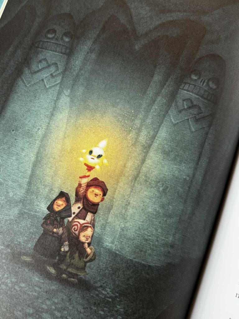I do tego cudowne ilustracje, które są ucztą dla oczu. Jednocześnie są mroczne i ciepłe, ciemne i pełne blasku, zadziwiające i otulające. Oglądałam je długo, bardzo długo, i wiem, że dzieci też tak mają.