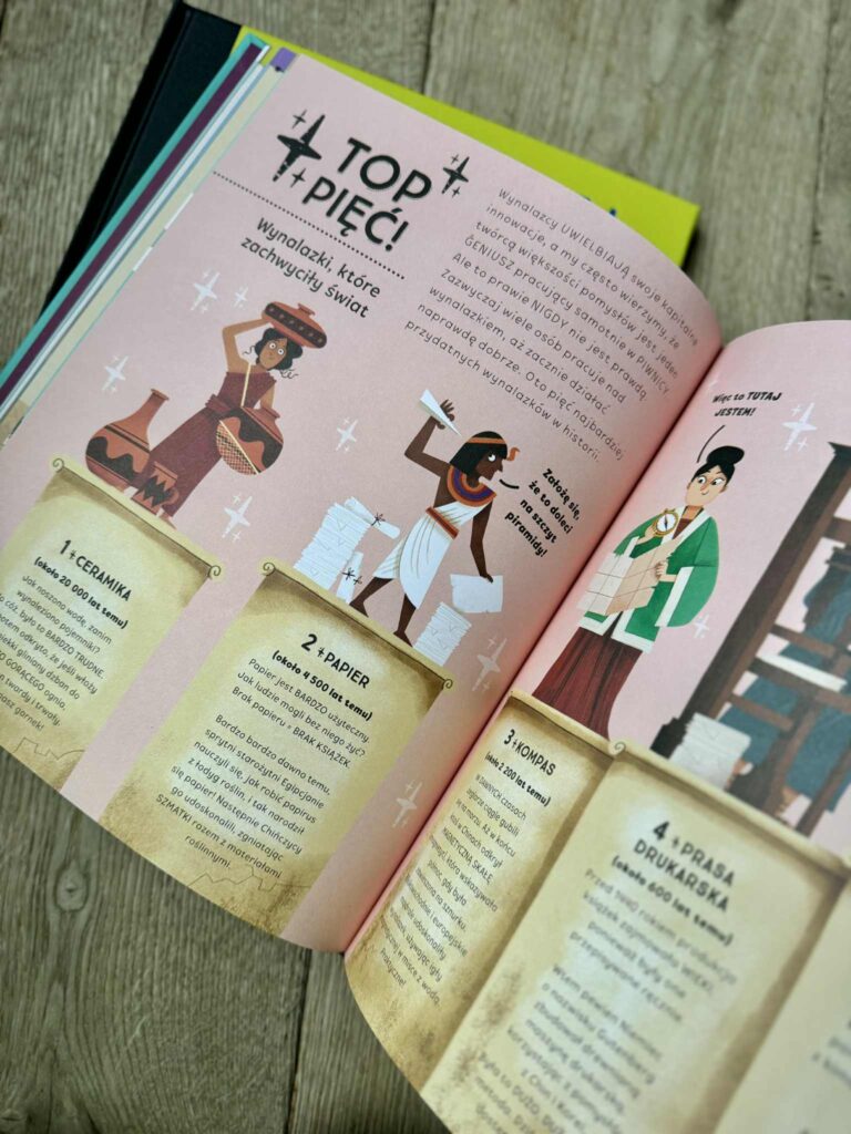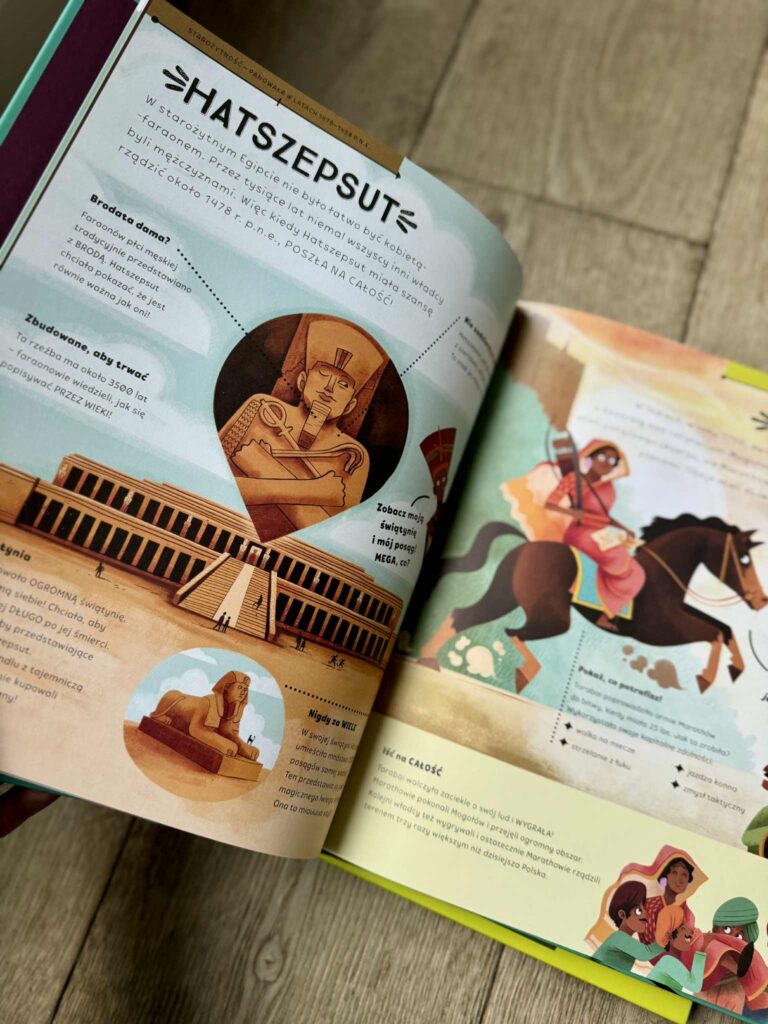W obu książkach zamiast ścian tekstu mamy przystępnie podane fakty, krótkie ciekawostki i mnóstwo zabawnych ilustracji. Doceniam je za humor, lekkość i to charakterystyczne „puszczanie oczka”. Taka forma o wiele lepiej pomaga zapamiętać różne informacje niż suche daty i definicje. Zresztą kto z nas na lekcjach historii nie czekał najbardziej na opowieści o dziwactwach Napoleona czy anegdoty o Aleksandrze Wielkim? Smaczki działają jak magnes. I dokładnie tym magnesem są te książki: przyciągają uwagę, pobudzają wyobraźnię i rozbudzają ciekawość.
