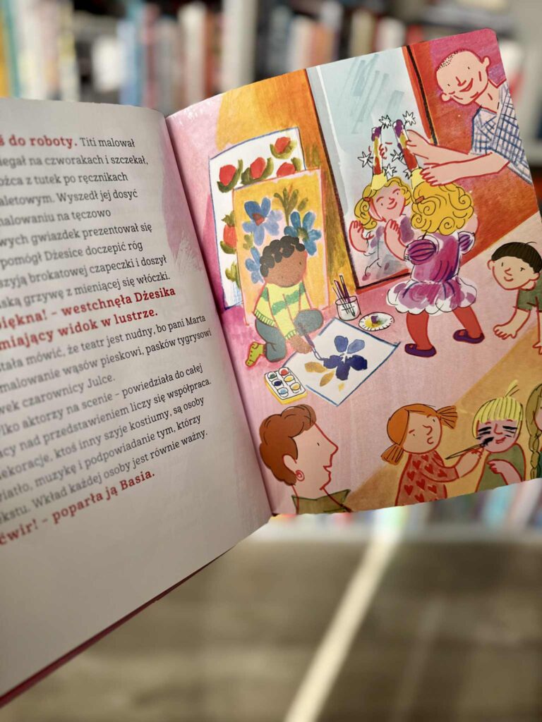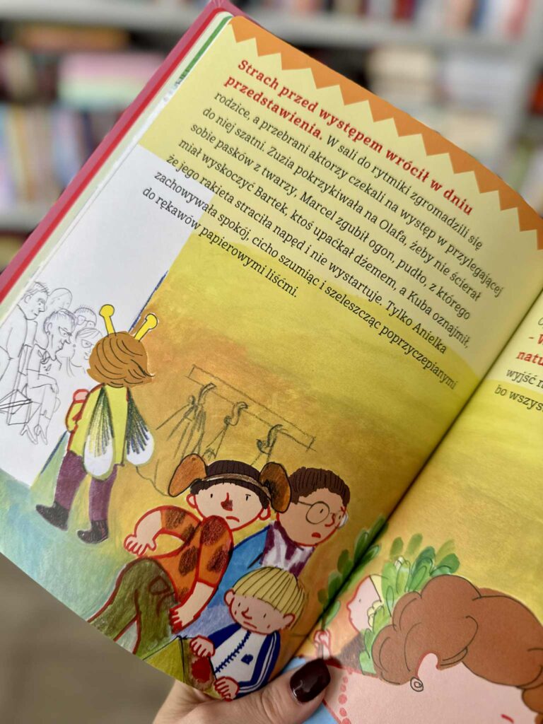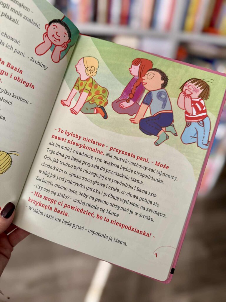 Najnowszy tom, „Basia i Przedstawienie” , to cudowna opowieść o emocjach, jakie towarzyszą dzieciom przed ważnym występem. W przedszkolu Basi szykuje się przedstawienie-niespodzianka dla rodziców. Dzieci uczą się ról, ćwiczą, próbują… i próbują też utrzymać tajemnicę. A wiadomo, że to nie jest łatwe, zwłaszcza gdy człowieka rozpiera duma i ekscytacja! Każde z dzieci przeżywa to wydarzenie po swojemu – jedni z tremą, inni z pewnością siebie, jeszcze inni z rozbieganymi myślami. I właśnie w tym tkwi urok tej książki, bo pokazuje, że nie ma jednego sposobu na przeżywanie emocji.