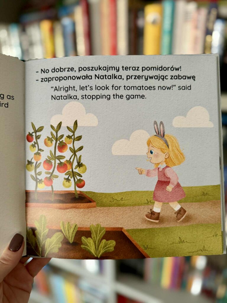 Jeśli szukasz książki dwujęzycznej dla naprawdę małego dziecka, takiej, która nie będzie ani podręcznikowa, ani przeładowana treścią, to  „Natalia w ogródku / Natalia in the Garden” może być bardzo dobrym wyborem na początek językowej przygody.