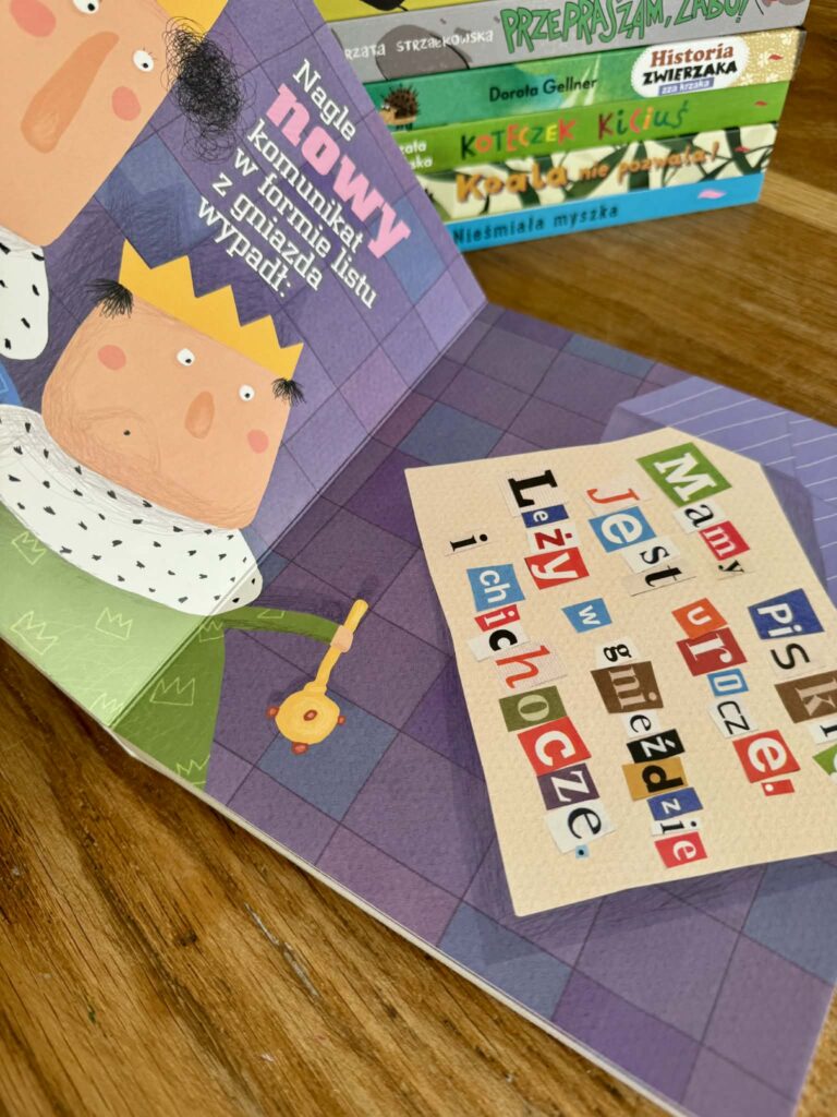 Wysyłacie list, który na pierwszy rzut oka wygląda jak żądanie okupu. Pewnie przez te litery wycięte z gazety, ale w końcu jesteście ptaszyskami – nie umiecie przecież pisać. Król, królowa i reszta pędzą na wieżę, aby zobaczyć słodkiego pisklaczka. „A tu w gnieździe, co?. Paskuda!”. Czy to straszne? Czy to złe? Nie! Pisklak bardzo szybko skradnie serca wszystkich mieszkańców zamczyska.