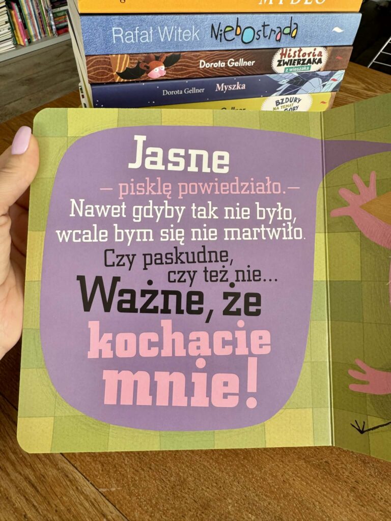„Pisklak” to jedna z tych historii, w których bohatera kocha się natychmiast. Choć zupełnie nieidealny, trochę nieporadny, a nawet „paskudny”, zostaje przyjęty z ogromną czułością. I sam podsumowuję to najlepiej: „Nawet gdyby tak nie było, wcale bym się nie martwiło. Czy paskudne, czy też nie… Ważne, że kochacie mnie!”.