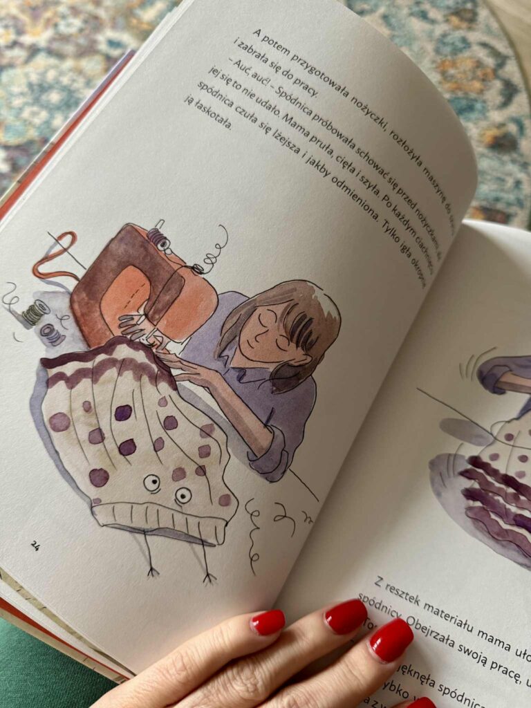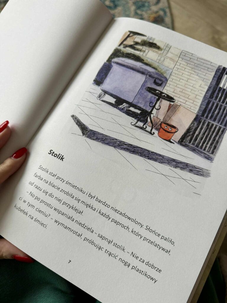 Całość doskonale uzupełniają ilustracje Bereniki Kołomyckiej. Są genialne w swojej prostocie. Oszczędna kreska, dużo dynamiki i emocji sprawiają, że te przedmioty naprawdę żyją. Tutaj nie tylko ludzie są bohaterami – każdy słoik, każda kartka i każda torebka ma swój charakter i swoją historię.