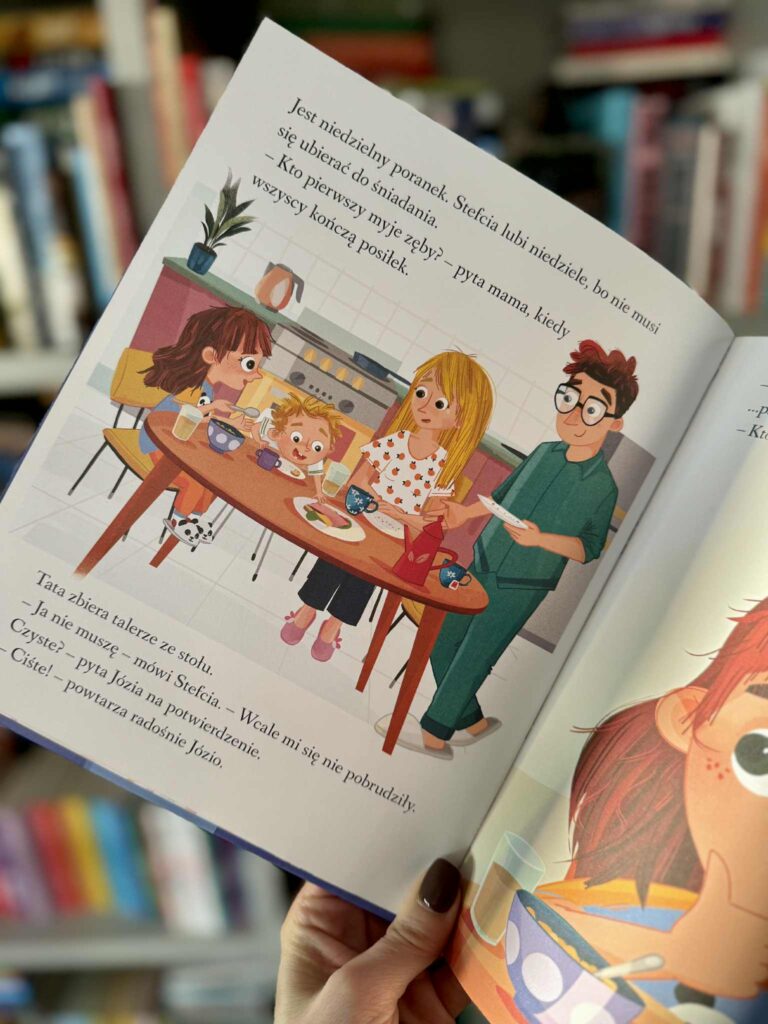 Nie widać od razu efektów, trwa za długo, bo przecież całe dwie minuty, a często bywa też źródłem rodzinnych napięć. Jeśli Twoje dziecko nie chce myć zębów, to warto sięgnąć po sprawdzone wsparcie – takie, które działa przez zabawę i bliskość, a nie przez straszenie. Właśnie taką rolę pełni książka „Stefcia myje zęby” autorstwa Aleksandry Struskiej-Musiał.