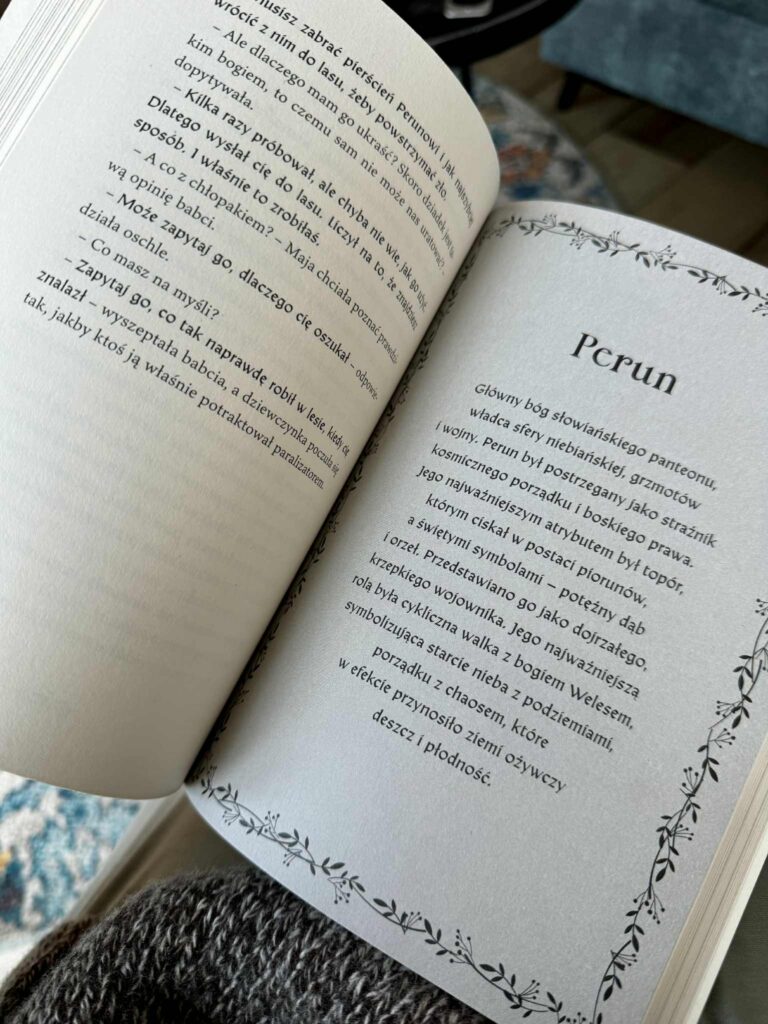 Główna postać, Maja, to dziewczynka nietuzinkowa. Ma rude włosy, pełne ciekawości oczy i ogromną miłość do przyrody. Las staje się więc w tej opowieści nie tylko tłem, ale wręcz bohaterem. Maja uwielbia też książki, zwłaszcza te, które opowiadają o dawnych wierzeniach Słowian. I to nie jest przypadek, bo jej zainteresowania splatają się z tym, kim jest, z historią jej rodziny i z tajemnicami, które stopniowo wychodzą na światło dzienne.