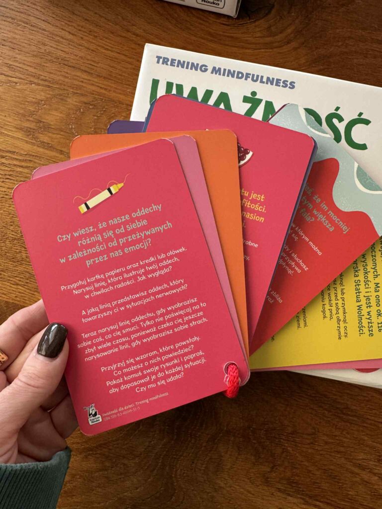 Karty pomagają dziecku zrozumieć swoje uczucia, wyciszyć się, skupić, zatrzymać na chwilę w codziennym chaosie. Pomagają redukować stres, poprawiają samopoczucie i uczą, jak radzić sobie z natłokiem bodźców, który dzieci mają przecież non stop.