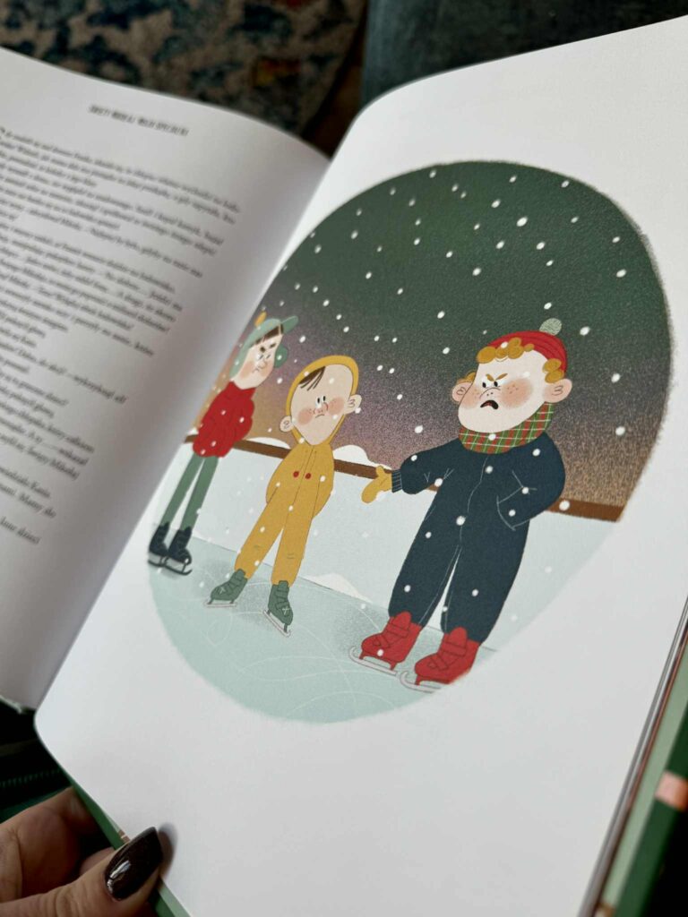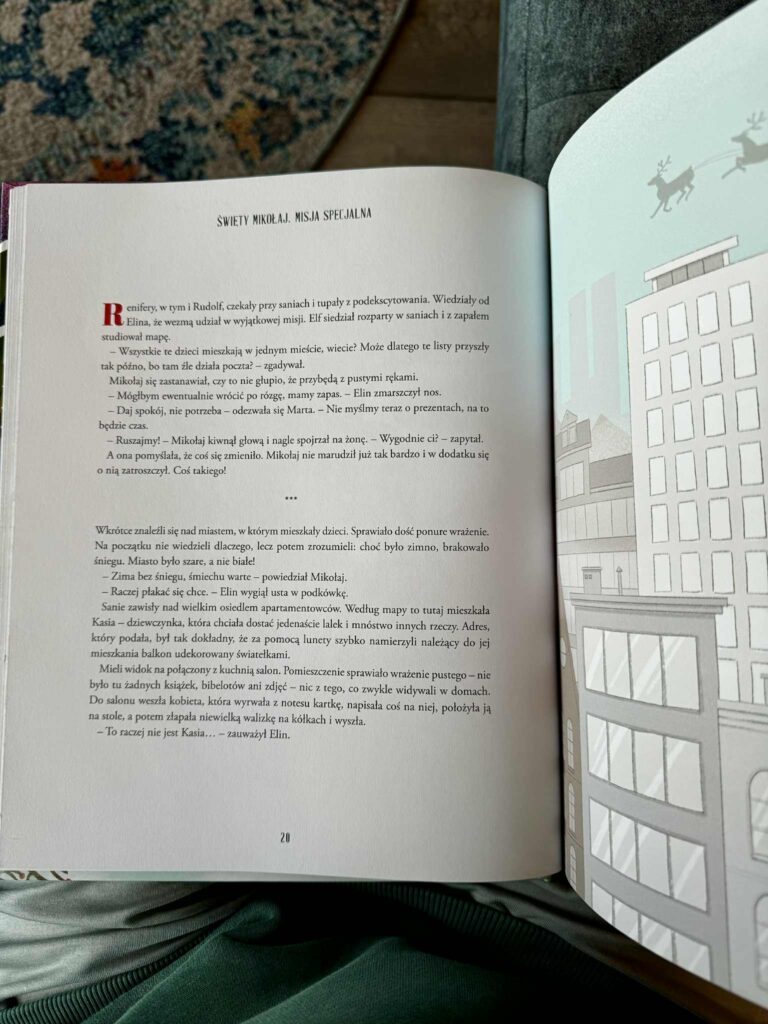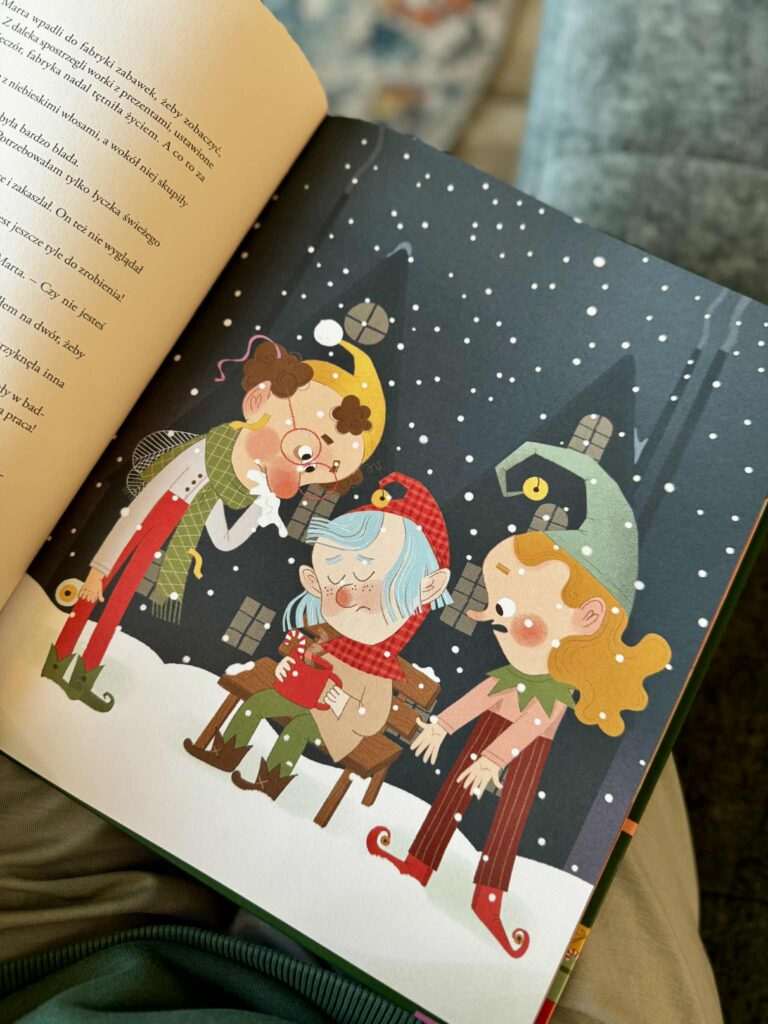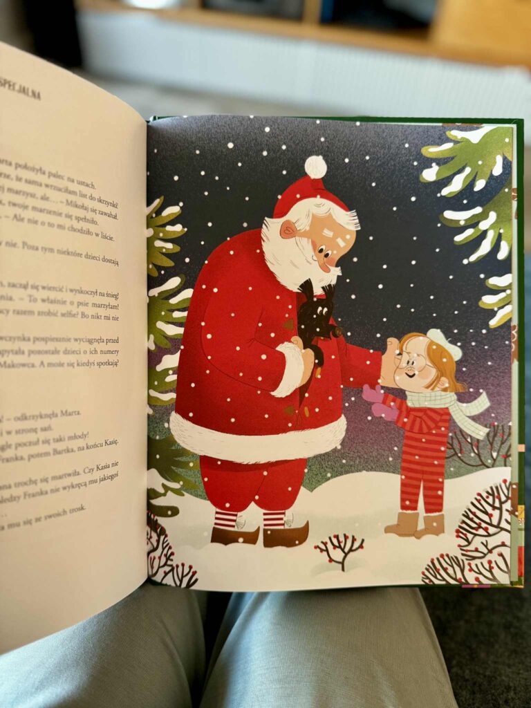 To jedna z tych książek, które warto przeczytać razem z dzieckiem. Bo oprócz tej świątecznej magii, zapachu pierników i skrzypiącego śniegu, jest tu też coś bardzo prawdziwego — przypomnienie, że najpiękniejsze prezenty to nie te zapakowane w błyszczący papier, tylko te, których nie da się włożyć pod choinkę. Miłość, troska, obecność.