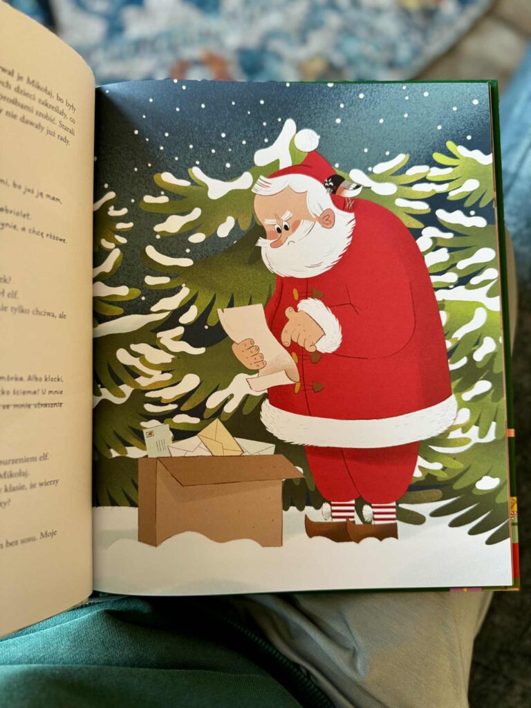 Dawno nie czytałam tak prawdziwej historii świątecznej. Takiej, w której Mikołaj nie jest tylko uśmiechniętym staruszkiem z reklamy, ale człowiekiem, który po latach pracy ma prawo być zmęczony. Bo ile można? Co roku te same listy, a właściwie coraz dłuższe i coraz bardziej roszczeniowe. Dzieci chcą już nie jednej lalki, ale jedenaście. Samochód, ale na baterie, i żeby w paczce były też zapasowe. Nowy laptop, komórka, klocki, z których da się zbudować cały wszechświat. No i nic dziwnego, że w pewnym momencie nawet Mikołajowi zaczyna brakować wiary w sens tego wszystkiego.