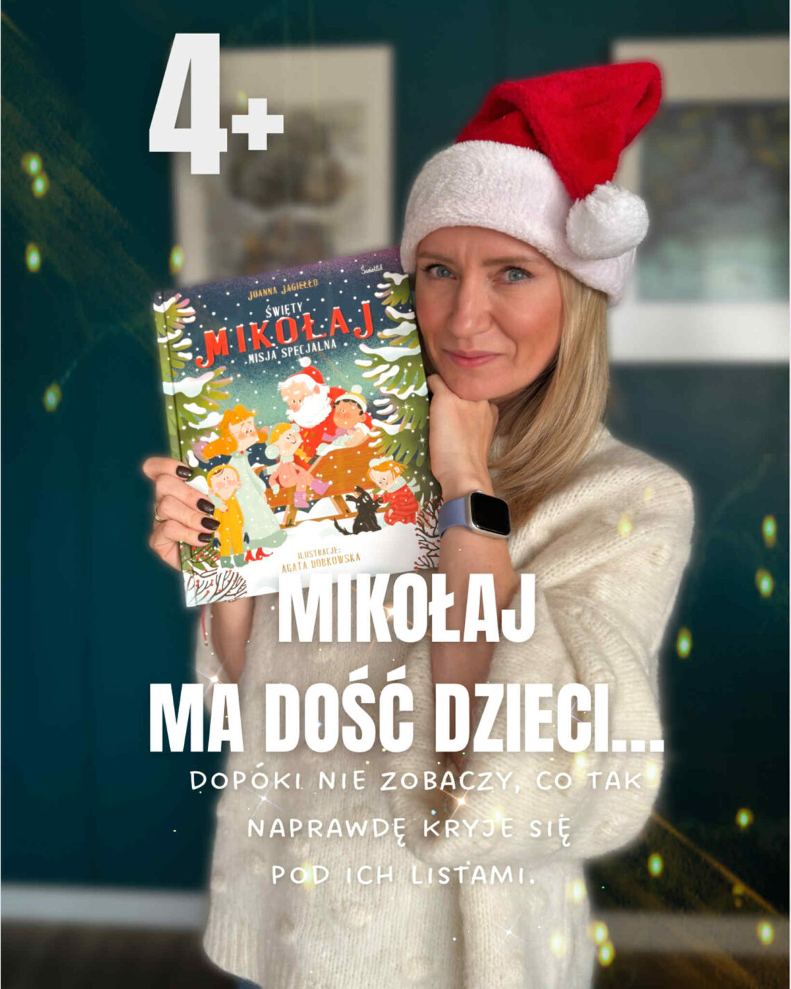 Joanna Jagiełło w książce „Święty Mikołaj. Misja specjalna” pokazuje właśnie takiego Mikołaja. Trochę zmęczonego, trochę rozczarowanego, może wypalonego… Obok niego jest Marta, jego żona, która też nie jest tylko tłem dla świątecznego bohatera. Ona też ma swoje uczucia, swoje smutki i marzenia. I kiedy w fabryce zabawek zaczyna się naprawdę gorący okres, a elfy pracują niemal bez snu, Marta i Mikołaj wyruszają razem w podróż. Na misję specjalną. Bo trzeba coś zrobić, żeby odzyskać sens.