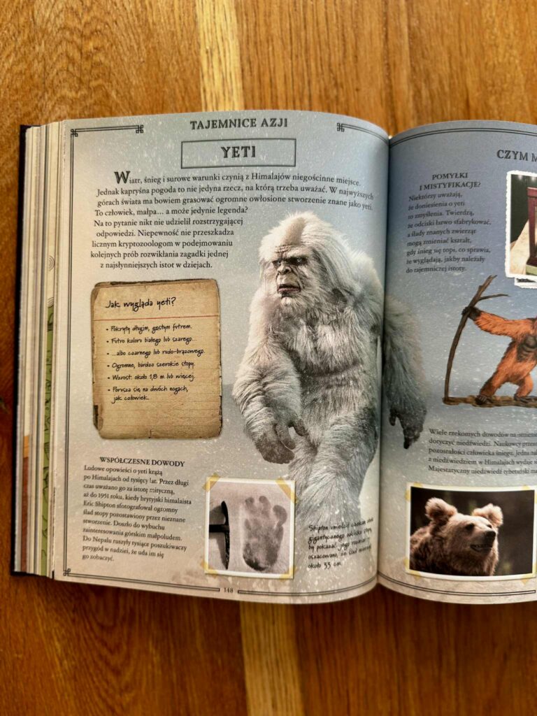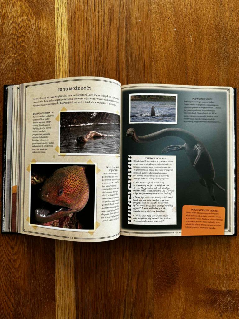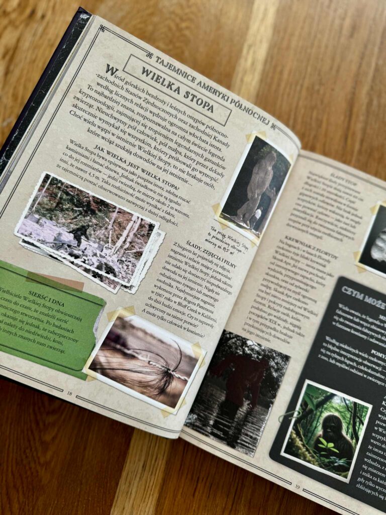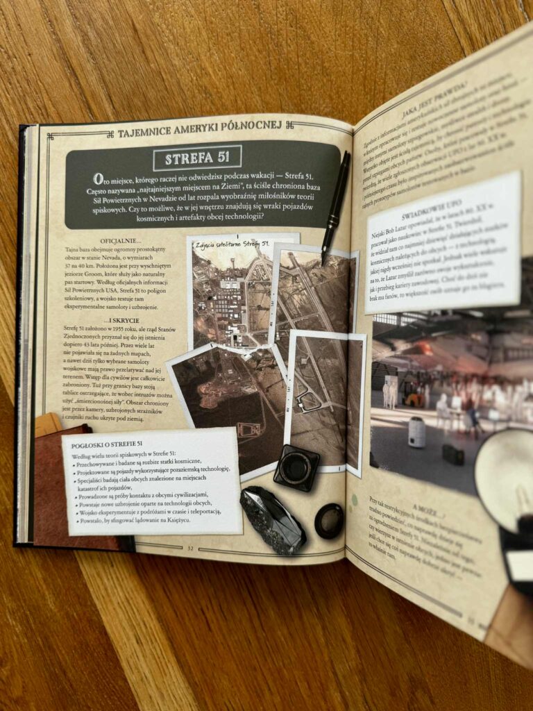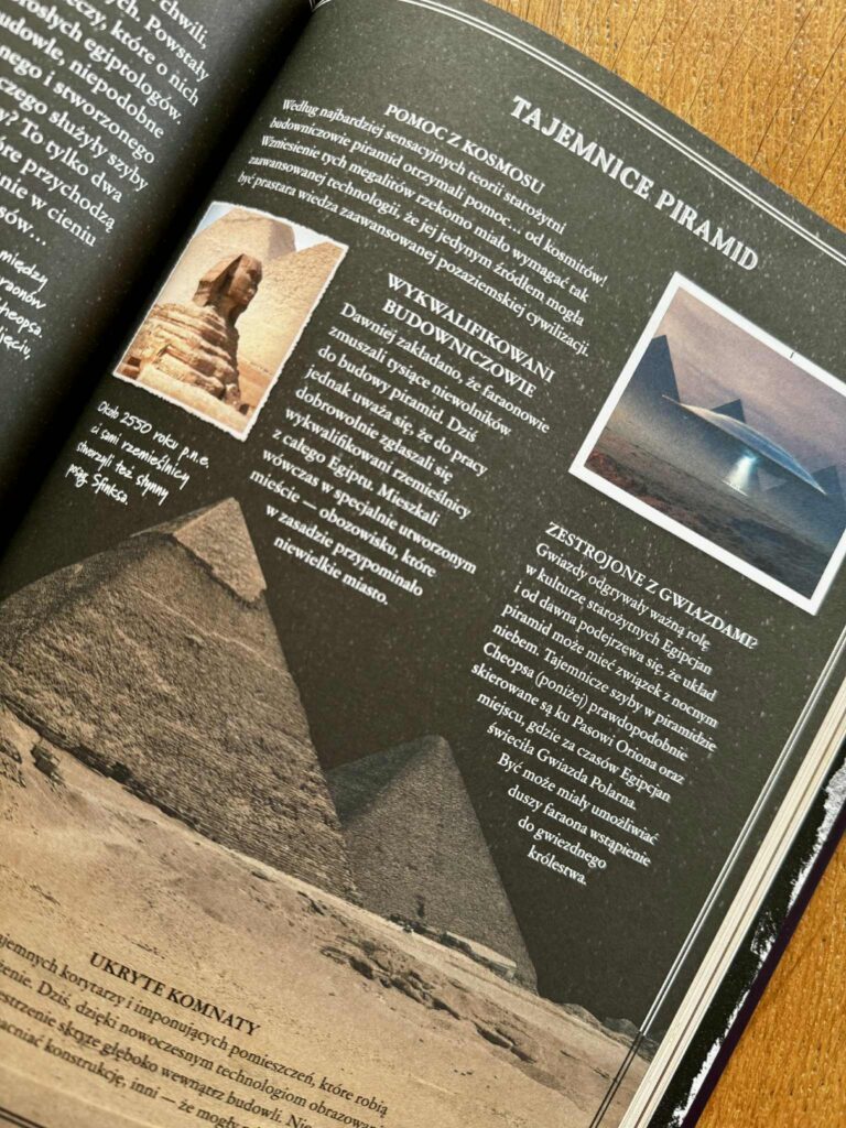 Czytając tę książkę z moją córką, co chwilę słyszałam: „Mamo, zobacz! A o co tu dokładnie chodzi?” – i przysięgam, że nie ma szans, że nie wkręcisz się w te historie. Książka jest przepięknie wydana: pełna kolorowych zdjęć, ilustracji, urywków z gazet, ciekawostek i krótkich, dynamicznych tekstów. Można ją czytać po kolei, można otwierać na chybił trafił i poznawać po jednej tajemnicy dziennie. To idealna propozycja do wspólnego, rodzinnego czytania, rozmów i dociekań.